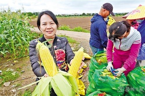 梅州市雅利公司在坭陂鎮10個村集約5000多畝土地發展玉米種植產業。(鍾小豐 攝)