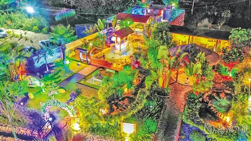 華燈已上,冬夜漸冷,但是溫泉區裏一片溫暖如春。情侶、家人、三五知己,浸泡在大大小小的瑤池裏,或濯足戲水,或舒臂遊走,或閉目冥想,或細語交談。令人愉悅的輕音樂響起,像泉水一樣流淌在花間、池裏,恍如世外桃源,讓人淺浮深浸,怡然自得。