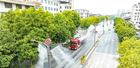“與灑水車等抑塵設備相比,智慧燈杆係統更加節能節水,既可以手動設置水霧噴灑的時間間隔,又可以通過實時感知溫度、濕度和PM2.5濃度變化,自動智能化控製係統運行。”陳方政介紹,路燈自動噴霧係統采用的水源為自來水,經過濾後進入噴淋係統,噴出的水霧粒子安全潔淨。智慧燈杆係統正為這座城市做“減法”,抑製揚塵、改善空氣質量,讓“城市綠肺”更清新。