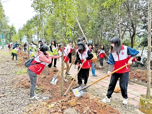 青年誌願者到長沙鎮小密村開展植樹活動。(團梅江區委供圖)