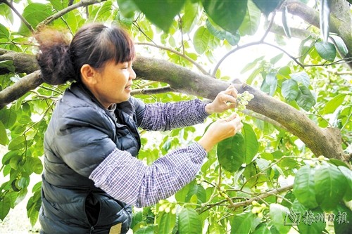 俗話說,花期不疏花,掛果也白搭。記者了解到,人工疏花授粉是保障梅州柚產量和品質的一個重要環節,每年柚花開放時,果農都會對柚樹及時進行疏花授粉。疏花是為柚樹“節育”,讓之後的果實長得更加飽滿充盈;而授粉是將不同品種柚花的雄蕊和雌蕊進行異花授粉,最大程度保證坐果率,雖然很耗時間和精力,但經濟效益相當明顯。