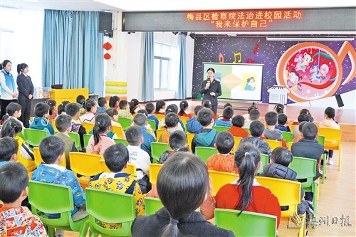 日前,梅縣區檢察院未檢辦幹警在梅縣區實驗幼兒園開展以“我來保護自己”為主題的法治安全教育活動,為小朋友們上了一堂生動有趣的法治課。