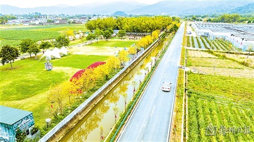 三圳鎮積極發動社會力量參與,成功爭取鄉賢充“植”資金75萬元,在九嶺村培鴻鄉墅-河堤路沿線(約1.1公裏)開展綠化提升,共種植宮粉紫荊300多株。在提升示範線路顏值的同時,也推動沿線民宿產業、客家農夫生態園等鄉村業態蓬勃發展,帶動村民就業增收和鄉村繁榮。