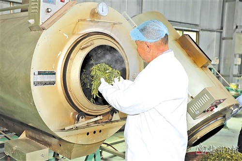 記者站在海拔600多米的萬福春專業合作社茶葉種植基地放眼望去,隻見一壟壟茶樹呈環形分布在各個山頭,鬱鬱蔥蔥。一株株茶樹間,工人正忙著采摘茶葉。在合作社製茶車間,先進的製茶設備一字排開,製茶師傅分工合作,有序進行殺青、揉撚、炒青等工作。不一會兒,清新的茶香撲鼻而來,沁人心脾。“我們種植茶葉600多畝,今年預計能收成幹茶2萬多斤,產值500多萬元。”劉德營說,茶場規模和效益不斷擴大,也帶動了一大批人務工就業、種植茶葉等。