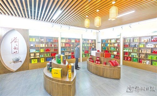 五華茶博彙集展示、銷售於一體,為茶葉企業提供展示和交流平台。(林翔 攝)