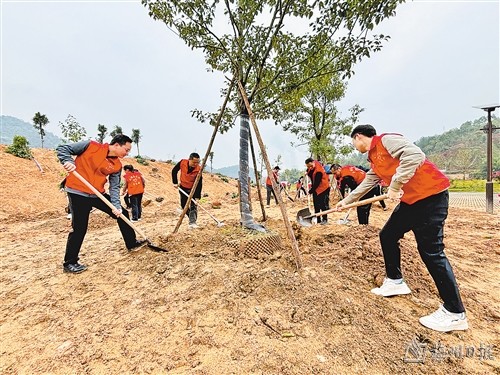在三河鎮綠美公園,大埔幹部群眾參加植樹活動。