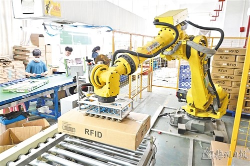 在泰昌科技的生產車間,機械臂靈活起落,智能搬運貨物。