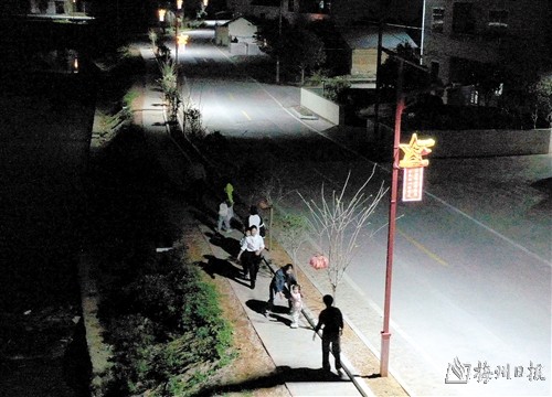 在改善了井下村、六吉村的夜間照明環境後,工作隊將目光投向了連接鳳儀村、古丁村的主幹道——鳳古公路。工作隊結合當地實際,定製了一款融合客家元素和紅色主題的路燈,並自籌資金24萬元,在鳳古公路安裝了105盞路燈。