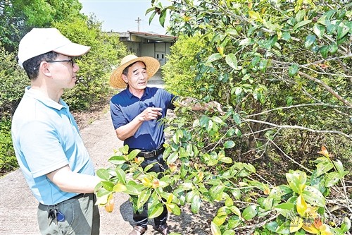 中行鎮潤源油茶基地的管護人員正在查看油茶生長情況。