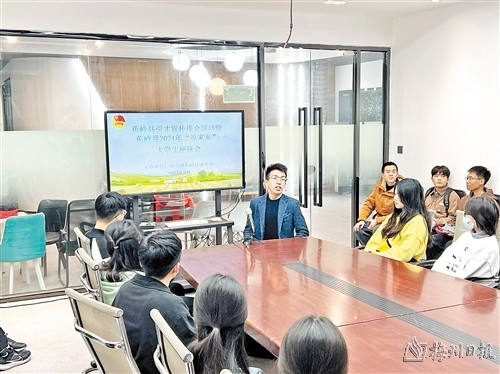林逸灝(中)與返鄉大學生進行座談交流。(圖片來源:梅州日報)