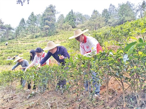 “采茶是個技術活,采的時候要用食指和拇指捏緊再折,千萬不能用指甲掐,要不然茶葉就變黑了。”茶園裏,徑南鎮機關黨支部的黨員幹部在茶農的指導下,認真學習采摘要領。層層梯田般的茶山上,黨員幹部活學活用,化身為“茶農”,穿梭於茶樹之間認真采摘新芽,一抹抹“紅色”身影成為綠色茶山上一道靚麗的風景線。
