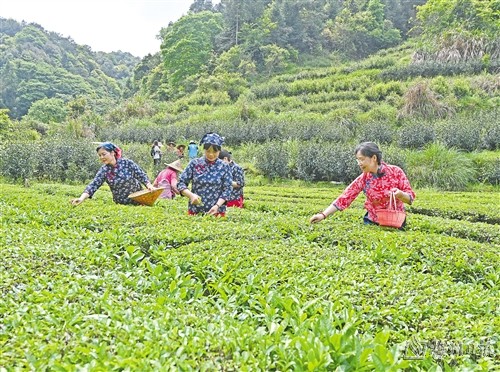 茶樹壟壑之間,村民和社工們手提竹簍,正有說有笑地采茶,一捏一提,一片片翠綠的芽尖被采摘入簍。村民賴運香向記者介紹起她家茶園采摘情況:“茶園從清明節前開采以來,每天有十幾名附近村民前來采茶,最多的時候達到二十多人。”