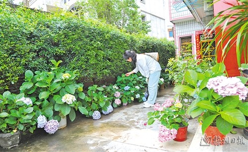 新鋪鎮同福村村民賴碧珍是遠近聞名的種花能手,家裏種了三四十種花卉。現在正值繡球花期,庭院裏開滿了藍色、粉色、紫色的繡球,還有水梅花、球蘭、燈籠花、藍雪花等,五顏六色的花卉裝點著這個小小的庭院。“我平時的愛好就是種花,陶冶心情又能美麗庭院,一舉兩得!”賴碧珍說。