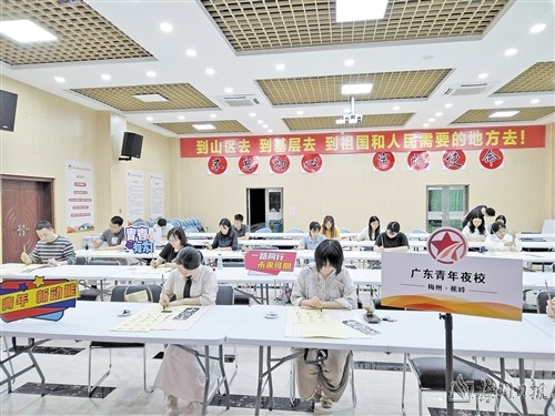 蕉嶺青年在縣青年夜校學習書法。(共青團蕉嶺縣委供圖)