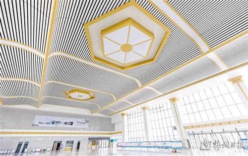 五華站候車大廳,天花板裝飾造型源於五華獅雄山遺址出土文物。