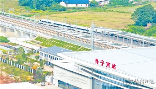 試運行列車緩緩駛出興寧南站。