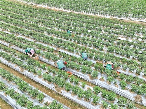 辣椒種植基地裏,村民們忙著采收航天椒。