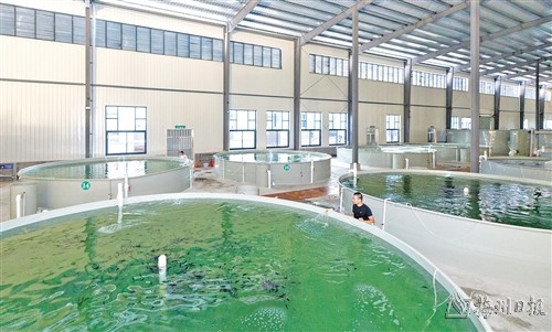 投放魚苗當日,記者走進該項目一期1號廠房,隻見寬闊明亮的廠房裏,現代化的魚池整齊排列,工作人員忙著將一桶桶鱖魚苗投放到魚池中。“我們首次投放的鱖魚苗約有6.4萬條,養殖大約五至六個月後可產出商品鱖魚。”該項目有關負責人介紹,今年1月至9月,該項目已完成投資1.18億元,目前項目一期1號廠房已完成部分鱖魚苗投放,2號廠房正在進行設備安裝,3號廠房正在有序施工中,整體按照計劃進度推進建設。