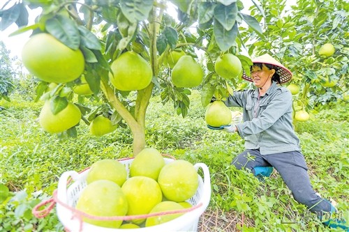 柚果豐收了,周邊務工的村民也鼓起了“錢袋子”。不論是柚果成熟前的看管打理,還是柚果成熟後的采摘、包裝等工作,都是當地農戶穩定收入的保障。“我平時在柚樹下割草,成熟期就采摘柚果,一天有約120元的收入,在家門口就能賺錢還可以照顧家庭,特別好。”逢甲村村民黃雲珠笑著說。