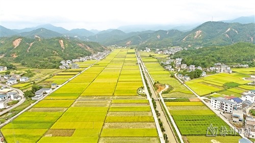 平遠縣仁居鎮鄒坊村晚稻陸續成熟,田間地頭呈現一派豐收的景象。(袁誌鵬 攝)