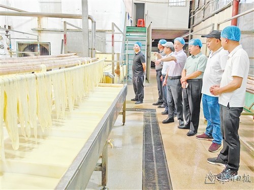 “福民村背靠著山,有優質山泉水作原料,很適合加工腐竹。村裏生產的腐竹目前已遠銷香港和深圳等珠三角城市。”新圩鎮相關負責人說。為進一步把黨建優勢轉化為產業發展優勢,推動特色產業高質量發展,今年6月,新陂鎮組織考察團到連山壯族瑤族自治縣眾創農貿發展有限公司,實地考察其豆製品加工項目發展情況,並圍繞豆製品研發、生產、銷售、服務,現代化、規範化的經營模式及如何做大做強豆製品進行深入交流,探討未來合作意向。