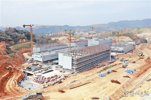 在黃槐鎮四望嶂,廣東省全民國防教育基地建設現場呈現一派熱火朝天的景象。挖掘機揮舞著長臂,土方被不斷開挖;壓路機有條不紊地來回碾壓,讓道路基礎愈發堅實;一輛輛工程車輛滿載建材,穿梭在工地之間……600多名工人加班加點、爭分奪秒,推動項目早日竣工。