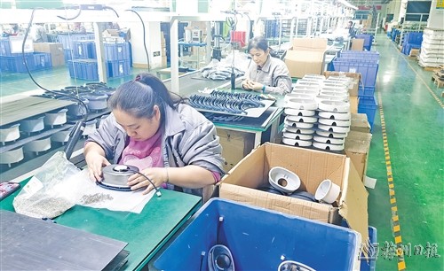 在廣東固特超聲股份有限公司超聲家電生產車間,工人們熟練地操作著各種設備,一條條生產線高效運轉,一件件產品在流水線上有序產出。