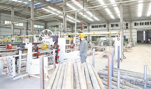在廣東健態實業有限公司生產車間,一根根粗壯的毛竹被製成長短統一的竹板。(丘林強 攝)