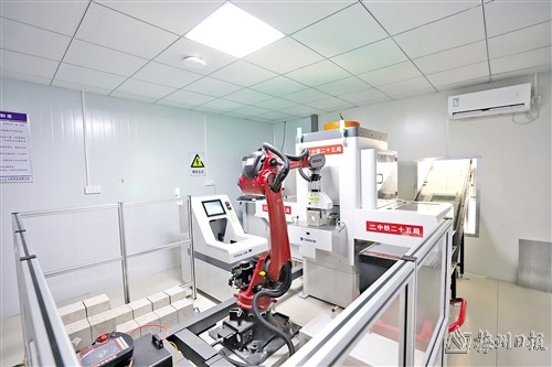 記者獲悉,自動化試驗機器人“砼強一號”已在武梅鐵路3標試驗室正式投產,這是廣東省在建鐵路項目首次將自動化機器人應用於試驗檢測領域。