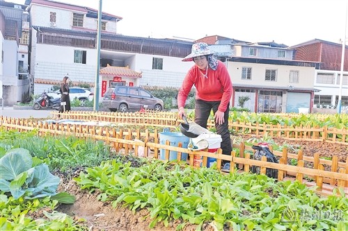 共享菜園綠意盎然,這裏已成為凝聚民心的重要陣地。(江嬋 攝)