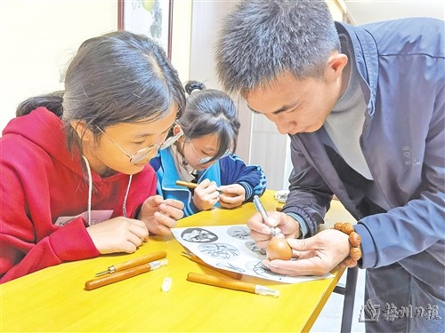 近幾年來,羅景龍積極投身蛋雕培訓誌願服務,舉辦“小小蛋殼 大大創意”非遺蛋雕親子藝術課程、大埔縣羅景龍蛋雕文藝誌願服務培訓班等,毫無保留地講授蛋雕曆史、特點、技法等知識。“蛋雕雖小,卻內含乾坤。通過線描、鏤空、影雕、拚雕、套雕等形式,可以呈現五彩紛呈的大千世界。目前,梅州蛋雕尚在起步,我希望能以誌願服務點亮非遺傳承之光,讓孩子們從蛋雕賞析中發現它的美,形成傳統文化的傳承,激活文化基因。”羅景龍信心滿滿。