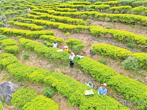 “春茶采摘期差不多有一個月,每天能有140元的收入,在家門口幹活還能顧上家,很不錯。”天剛破曉,梅溪村村民張女士就已在山腳下的茶園裏忙碌開來。