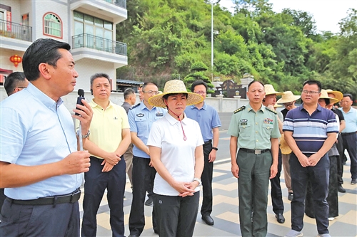 會前,鍾秀堂一行先後來到安流鎮樓光村、低坑村全域土地綜合整治現場點、橫流渡公園等地,現場調研“百千萬工程”典型鎮村建設工作推進情況(如右圖)。調研結束後,縣委常委會在安流鎮召開會議,聽取縣城鎮建設專班、鄉村振興專班彙報全縣第三批典型鎮、典型村培育進展情況,安流鎮彙報今年“百千萬工程”工作推進情況,與會人員作交流發言,並提出意見建議。