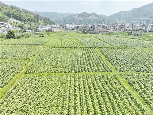 得益於精細化管理,高陂鎮煙田連片的煙葉枝繁葉茂,長勢喜人。(高陂鎮政府供圖)
