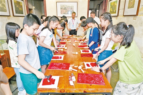 研學采風活動的最後一站是省重點文物保護單位、興寧市十大古民居之一的磐安圍。在這裏,朱家教拳法傳承人羅玉祥師傅招式剛勁有力,小記者們也學得有模有樣。漫步古圍屋,小記者們仔細欣賞精美的建築裝飾和興寧版畫,認真聆聽曆史故事,並在老師指導下體驗興寧版畫製作,領略非遺藝術的別樣韻味,為此次研學采風活動畫上圓滿句號。(記者 梁蕊)
