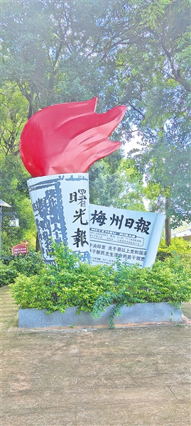 初入曙光公園,印著《曙光報》與《梅州日報》字樣的主題雕塑映入眼簾,它高高矗立,如同一柄火炬,照亮了那段波瀾壯闊的革命歲月。沿著蜿蜒的石階前行,路邊綠樹成蔭。黨報展現是曙光公園裏最亮眼的一道景觀。煤油燈下,八仙桌前,刻字、拚版、印刷,三尊解放戰爭時期“報人”銅雕栩栩如生,道出了一段紅色往事:1948年夏秋至次年春,梅興平邊縣委在長田石角村出版早期機關報《曙光報》,及時宣傳黨的政策,團結了蘇區百姓。駐足在展現牆前,仿佛能看到當年的報人們在艱苦的環境下,堅守信念,為了傳播革命思想而日夜忙碌的身影。風雨百年路,邁進新時代,時至今日,《曙光報》這段艱苦卓絕的辦報曆史,與《梅州日報》慶祝建黨百年特刊在文化牆上接續展現,濃縮曆史,撫今追昔,振奮人心。