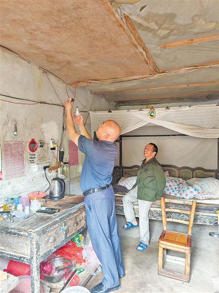 黨員幹部在開展“周二上門去”行動期間,幫助群眾更換電燈泡。(羅崗鎮政府供圖)