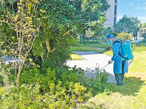 三角鎮則聚焦“清理+消殺”雙重發力。在客天下社區,該鎮組織專業蚊蟲消殺隊,對綠化帶、水域周邊等公共區域進行全覆蓋消殺;社區聯合物業、市區“雙到”掛點單位黨員誌願者等20餘人,集中清理路麵垃圾、清除積水窪地等。“我們在日常清潔基礎上加強管理,及時清理垃圾雜物和積水,居民也非常自覺,大家一起動手,以最優環境迎接節日到來。”客天下物業項目經理梁炳華說。