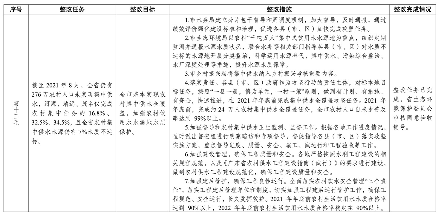 第二輪中央生態環境保護督察第十三項、第十六項任務整改完成情況表