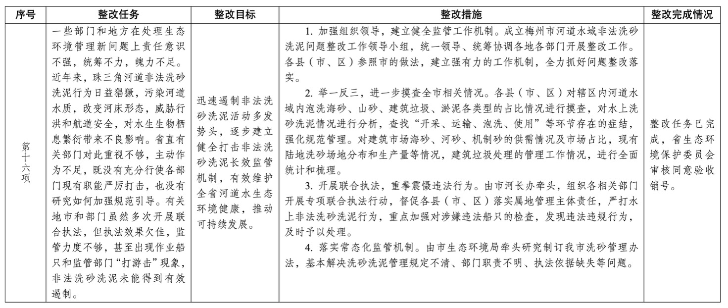 附表:第二輪中央生態環境保護督察第十三項、第十六項任務整改完成情況表