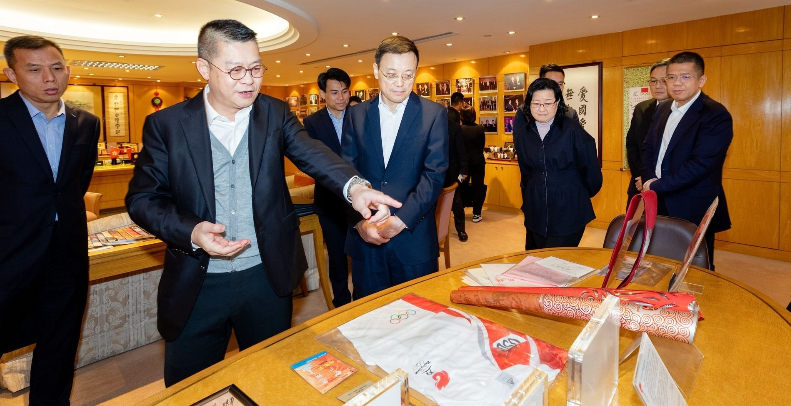 馬正勇楊朝暉一行在金利來集團考察。(圖片來源:梅州日報 連誌城 攝)