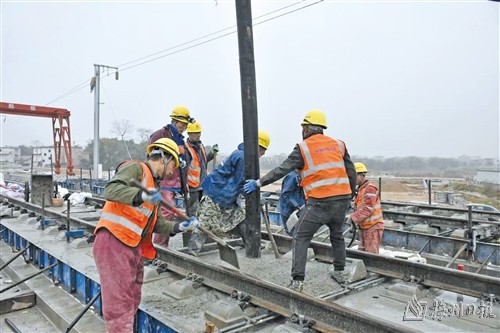 梅龍高鐵三標段無砟軌道床澆築現場。(通訊員供圖)