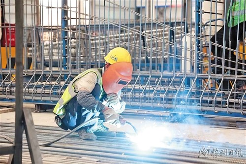 工人正在進行鋼筋焊接作業。(汕梅高速公路改擴建項目部供圖)