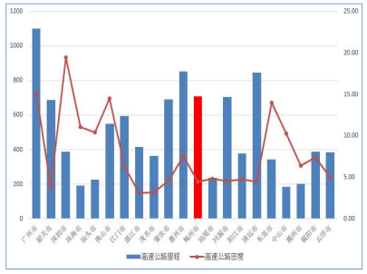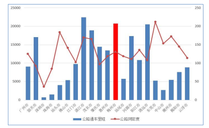 高速公路網局部不完善,部分路段擁堵現象嚴重。市域內部縣區之間未完全實現高速直連直達,平遠縣、蕉嶺縣、大埔縣及豐順縣之間未實現高速公路直接連通,高速公路呈射線分布多,成環成網布局尚未形成,整體路網效應發揮不夠充分。路網覆蓋整體依然不足,豐順縣南部、梅縣區和興寧市北部仍是高速覆蓋盲區,高速公路路網密度為4.46公裏/每百平方公裏,在全省21個地市中排位第十五,在粵北片區5個地市中排位第三,僅比周邊贛州的3.8公裏/每百平方公裏、龍岩的3.6公裏/每百平方公裏稍微領先。隨著梅州與汕潮揭地區的經濟聯係日益緊密,汕梅高速交通量增長迅速目前已接近40000pcu/d,是粵東地區較繁忙的高速公路之一,由於汕梅高速早期建設,線型較差,加上五六類大貨車占比大,經常發生路段擁堵,交通事故多發易發,同時也存在較大安全隱患。