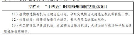推動梅州機場遷建取得實質性進展,加快推進機場遷建,深化梅州機場遷建場址研究,爭取完成機場遷建選址報批前期工作。